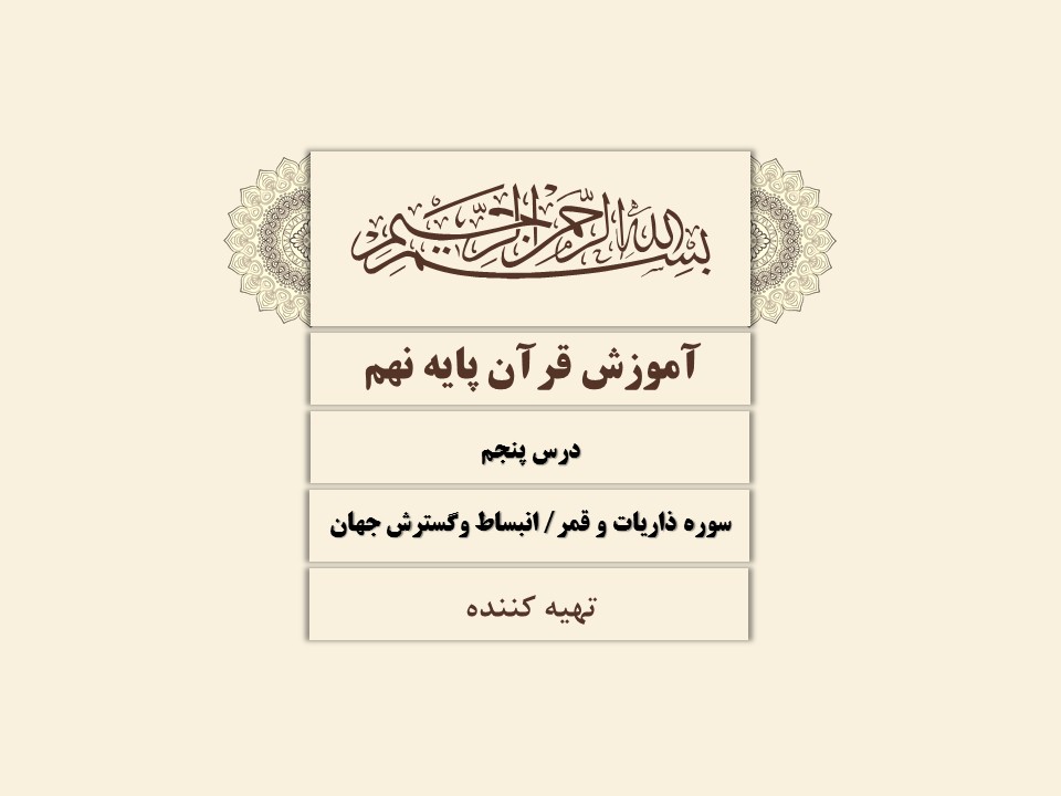 دانلود پاورپوینت درس پنجم قرآن پایه نهم  - سوره ذاریات و قمر و انبساط و گسترش جهان