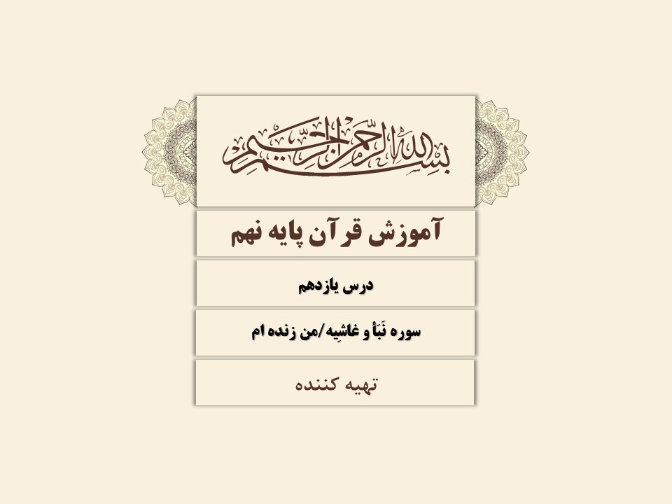 دانلود پاورپوینت درس یازدهم آموزش قرآن پایه نهم - سوره نبا و غاشیه و من زنده ام