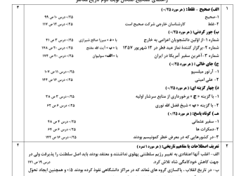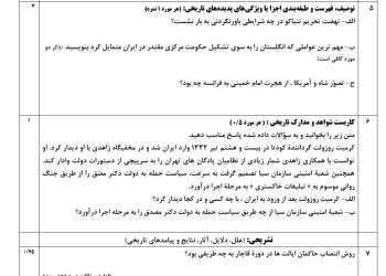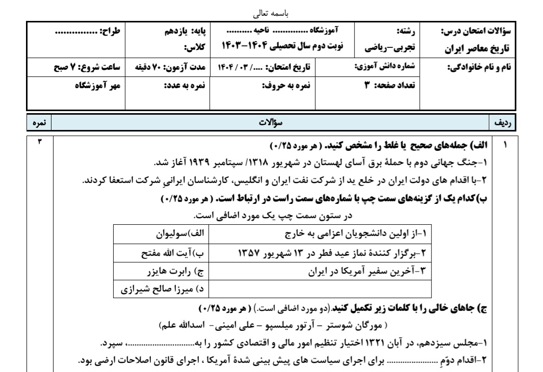 سوالات امتحانی شبه نهایی خرداد ماه تاریخ معاصر ایران پایه یازدهم کلیه رشته های تجربی، ریاضی ، فني و حرفه ای و کار و دانش بر اساس بارم بندی جدید و کتاب چاپ ۱۴۰۳