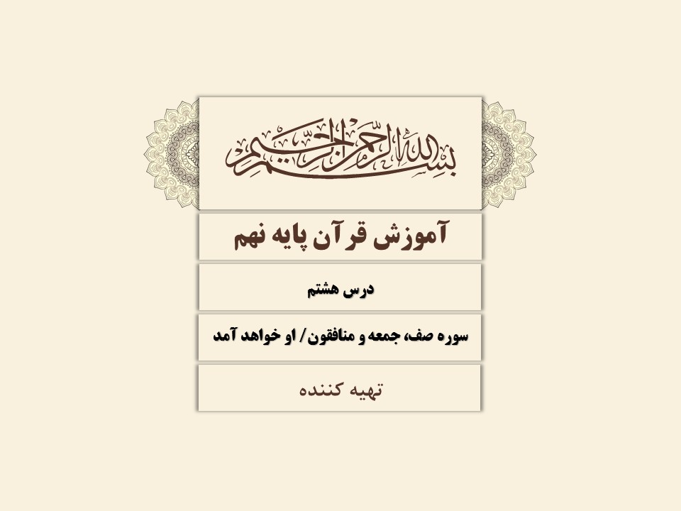 دانلود پاورپوینت درس هشتم آموزش قرآن پایه نهم سوره صف جمعه منافقون او خواهد آمد پاورپوینت درس هشتم آموزش قرآن پایه نهم دانلود پاورپوینت درس هشتم قرآن نهم آموزش قرآن پایه نهم پاورپوینت آموزش قرآن پایه نهم قرآن پایه نهم پاورپوینت قرآن پایه نهم