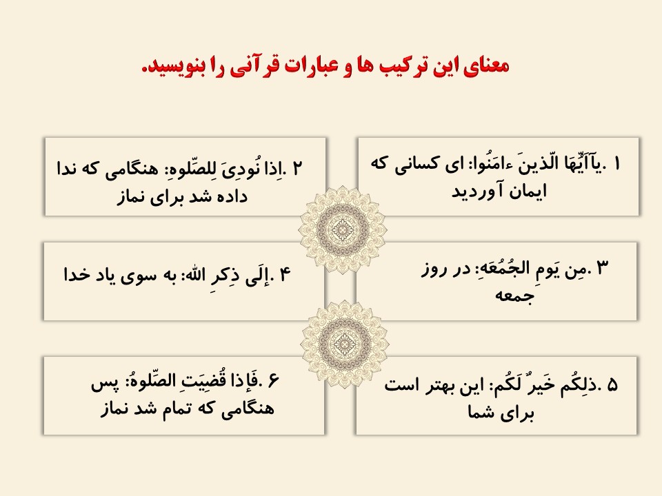 پوشش کامل درس (جلسه اول و دوم) به همراه صوت آیات