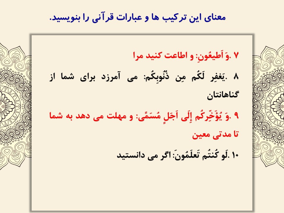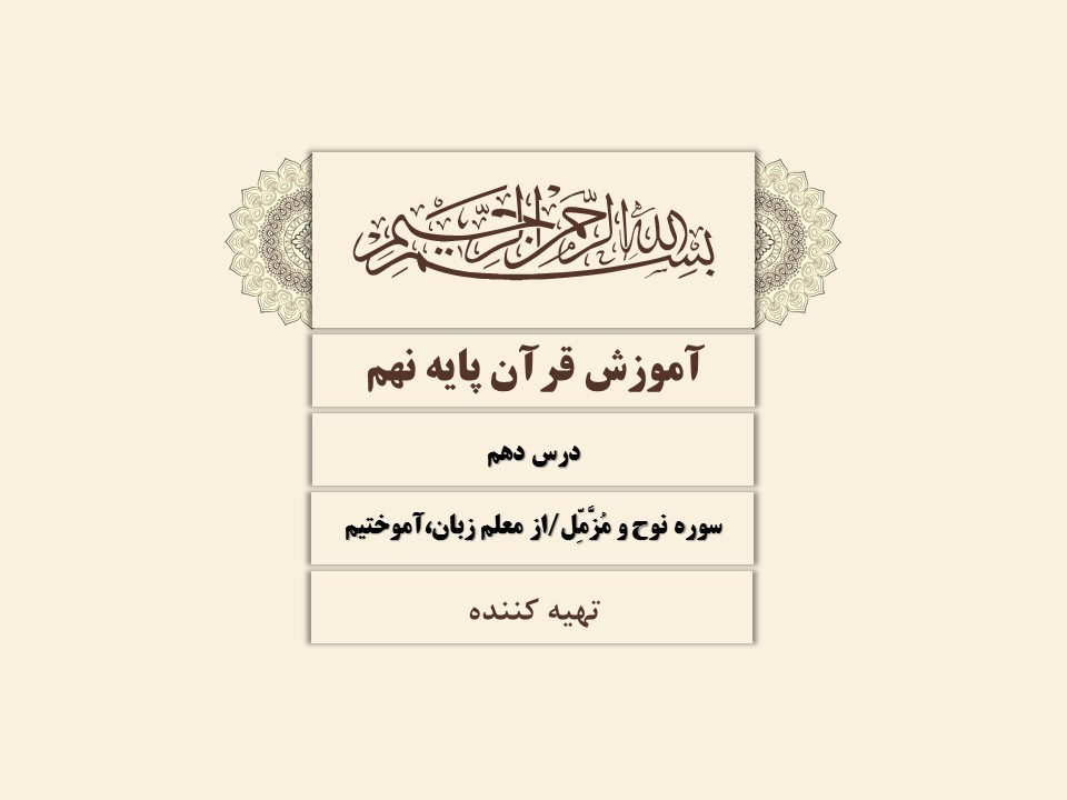 دانلود پاورپوینت درس دهم آموزش قرآن پایه نهم - سوره نوح و مزملو از معلم زبان آموختیم